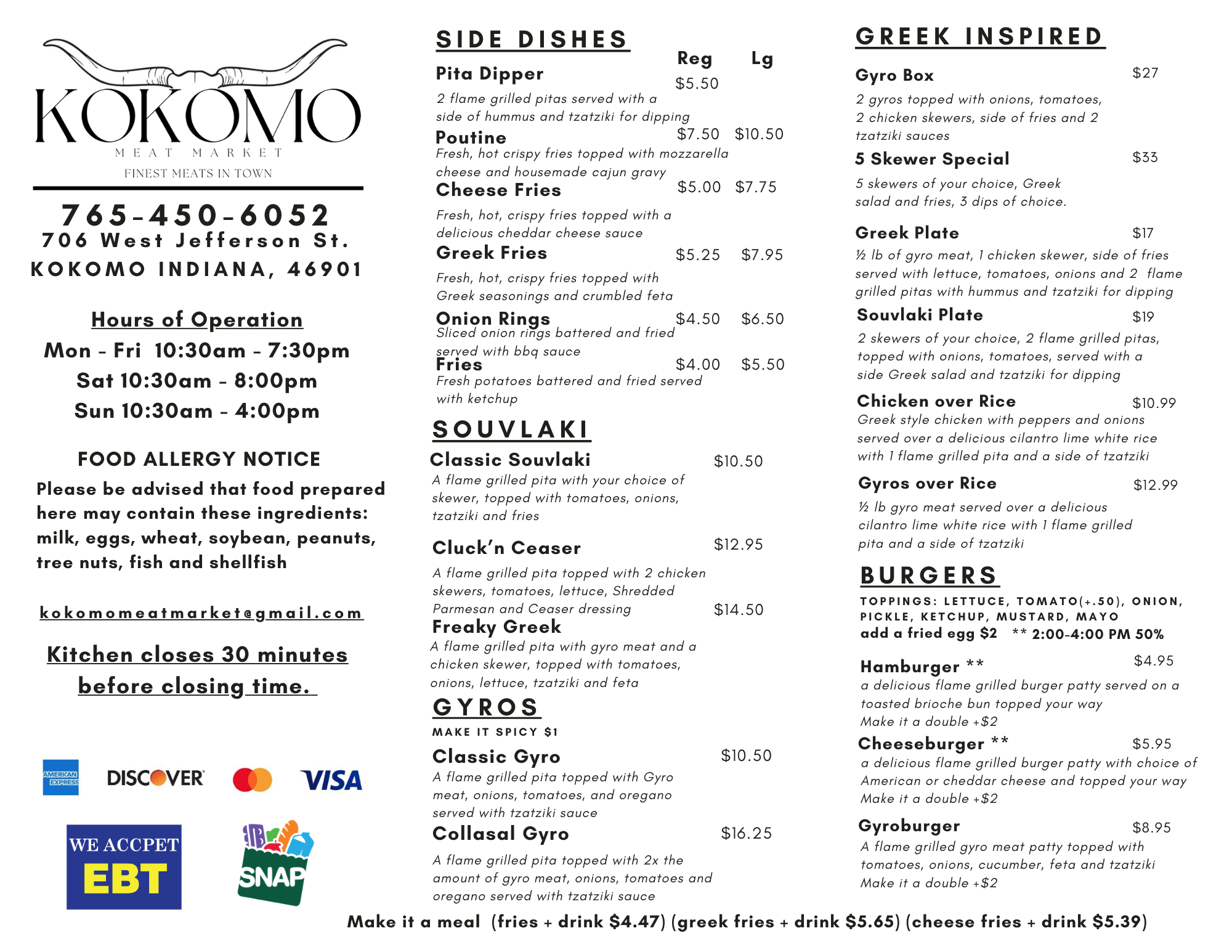 Kokomo Meat Market is your local, full-service butcher shop proudly serving the Kokomo and Howard County community. We specialize in fresh-cut meats, freezer beef, jerky, and specialty items prepared with care and quality you can taste. Our team combines small-town service with expert craftsmanship — offering custom cuts, processing, and even hot meals and grill options right from our shop. Whether you’re stocking your freezer, grabbing dinner, or looking for something special, Kokomo Meat Market brings the best farm-to-table flavors to your table..